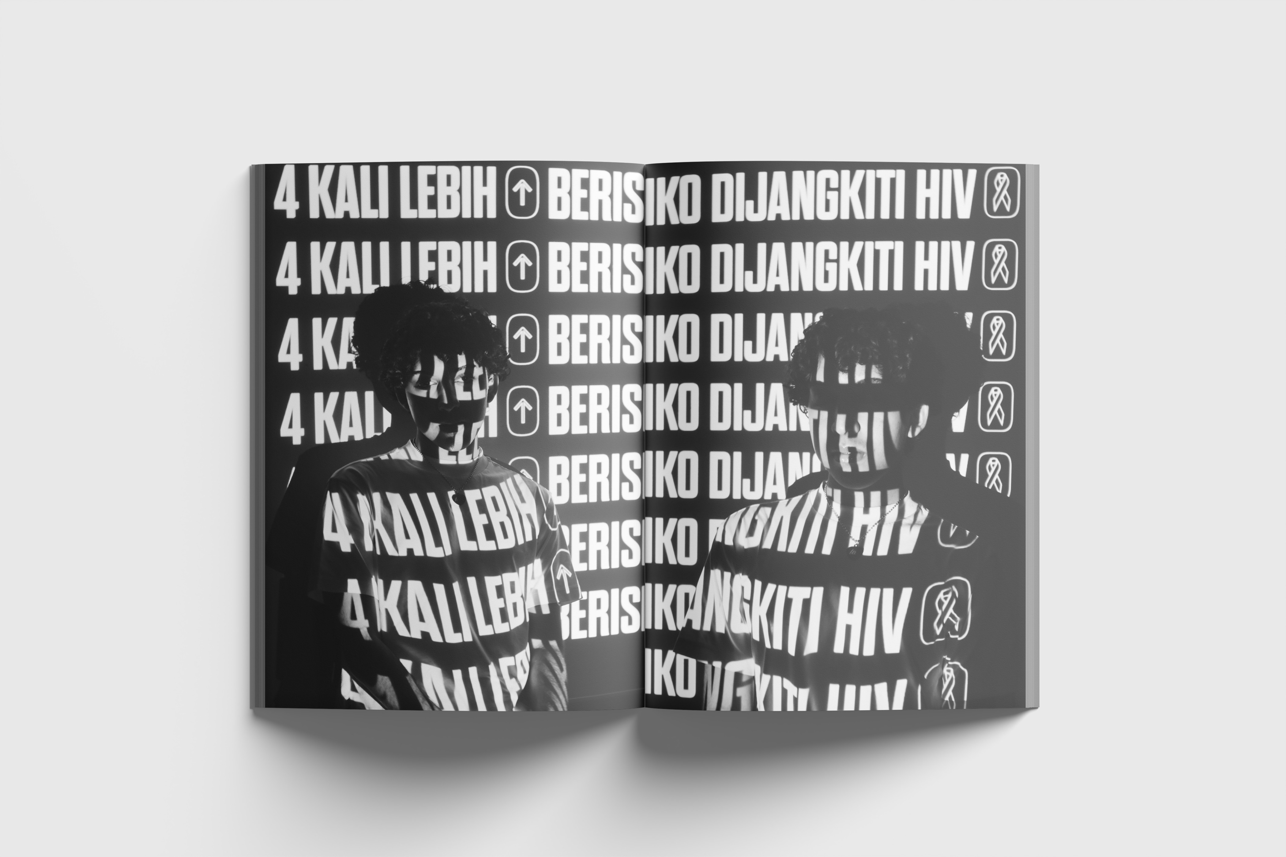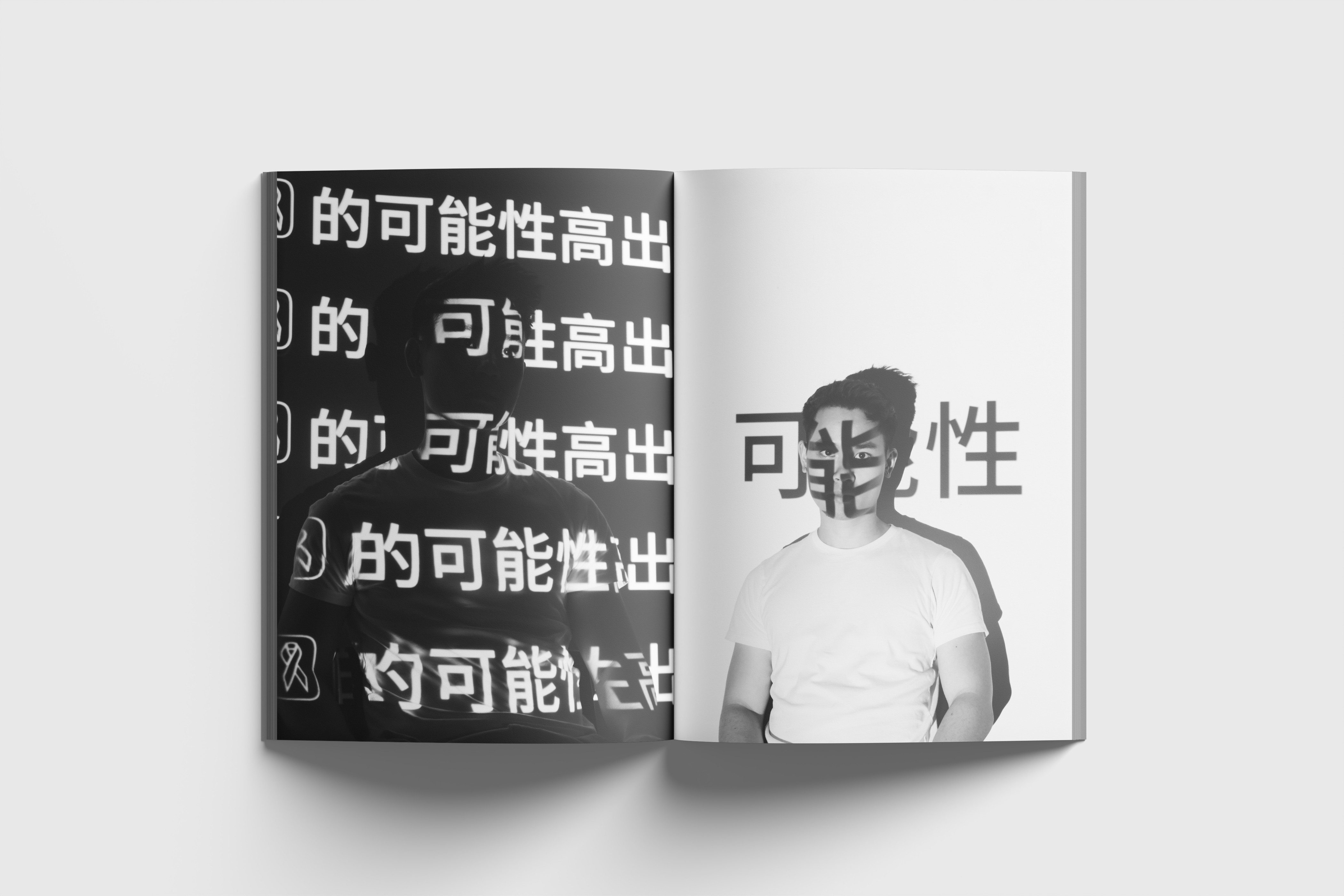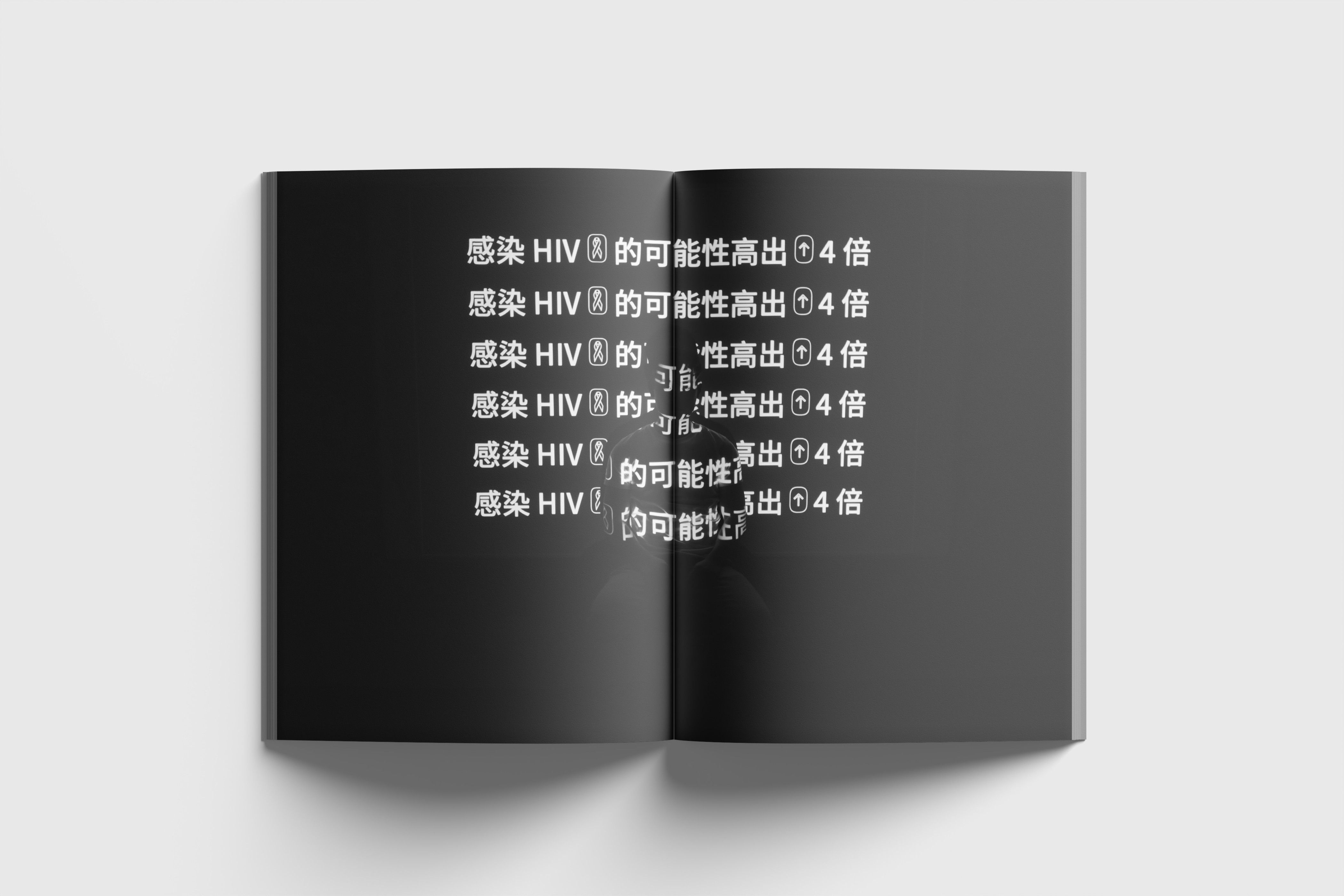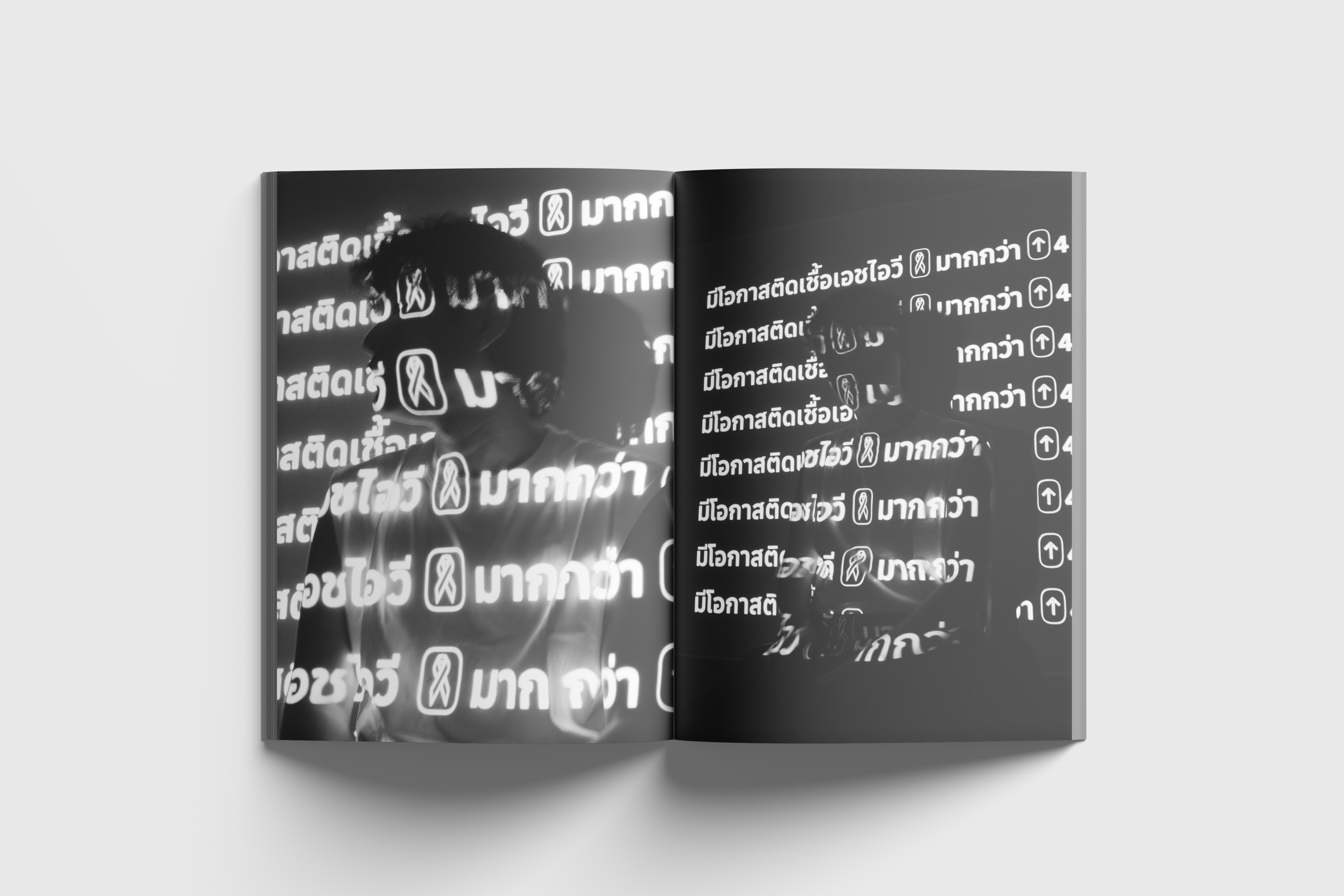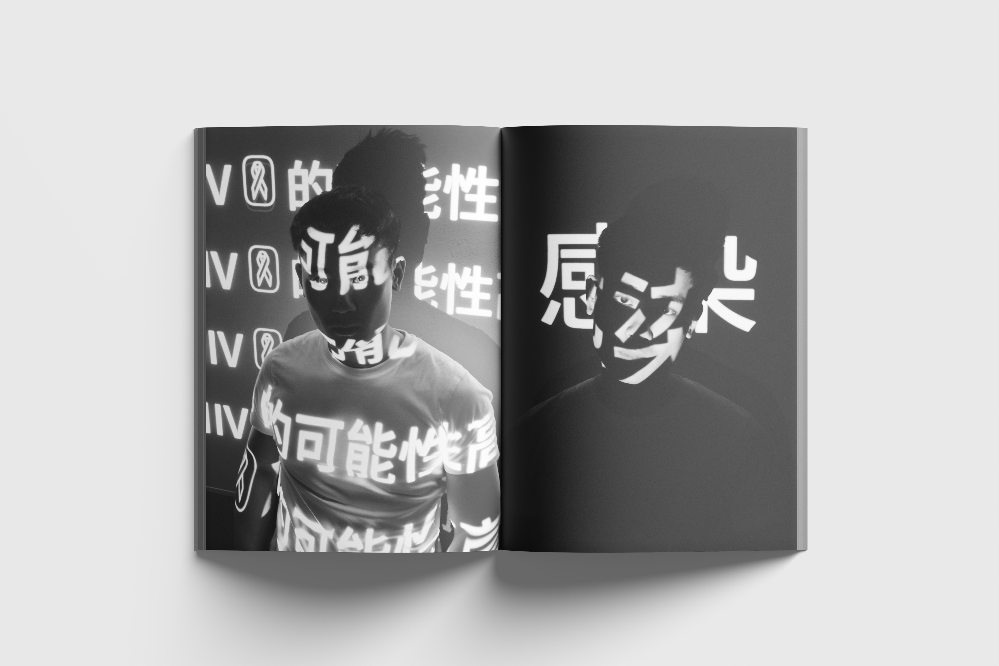 This project uses projector photography to present the confronting statistic that “Asian-born gay, bisexual, and other men who have sex with men are four times as likely to acquire HIV than Australian-born men.” By projecting this text in each subject’s native language directly onto their body, the work reimagines publishing as an embodied, spatial act—centering lived experience over passive consumption. The project resists traditional design outputs, instead using language and the body as tools for visibility, protest, and connection within a public health context.